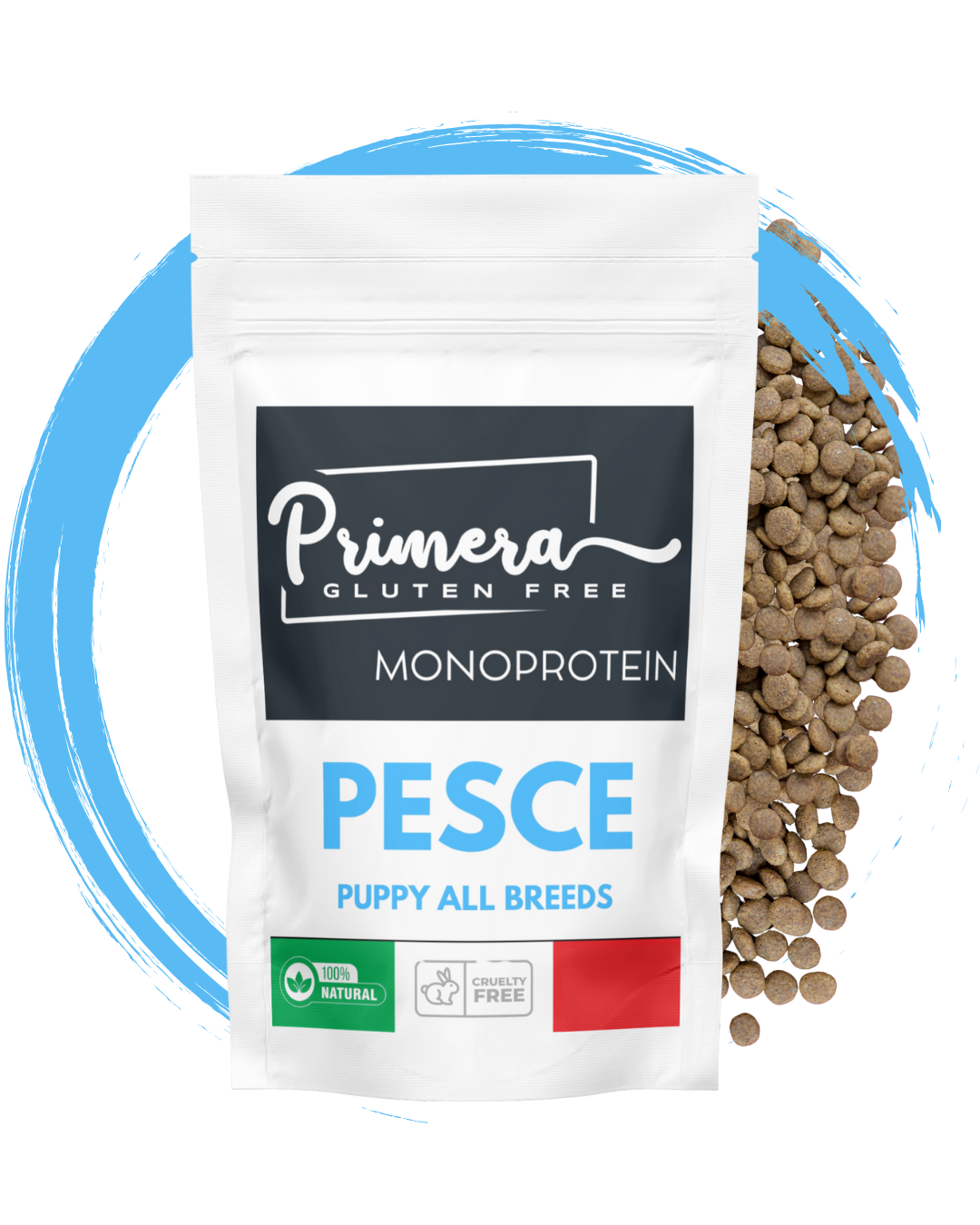 Pesce (di cui disidratato min. 30%, fresco min. 12%), riso (min. 22%), farina di piselli, oli e grassi animali stabilizzati, favino, proteine idrolizzate di pesce, semi di lino (fonte di acidi grassi Omega 6 e Omega 3), olio di pesce, polpa di barbabietola essiccata, sostanze minerali