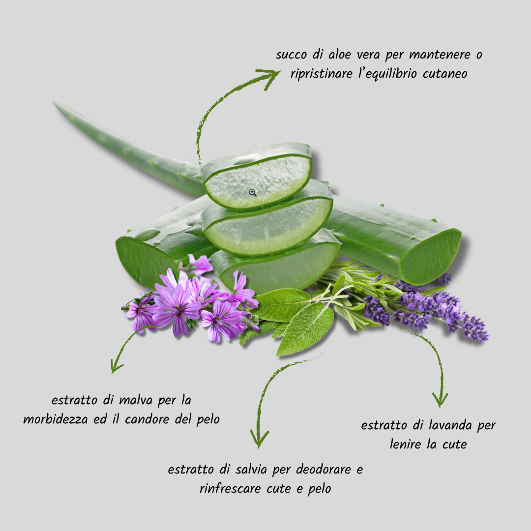 Prodotto naturale studiato per il lavaggio frequente del cane che si adatta tutti di tipi di manti e pelle, dal profumo dolce e rilassante. Formulato per eliminare l’ingiallimento del pelo durante il lavaggio. Contiene olio essenziale ed estratti di lavanda ed estratto di salvia.