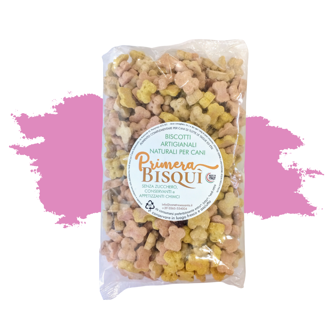 Farina di mais, farina di grano tipo 0, farinaccio, strutto, olio di oliva, banana-albicocca-fragola dis., cloruro di sodio, curcuma dis.