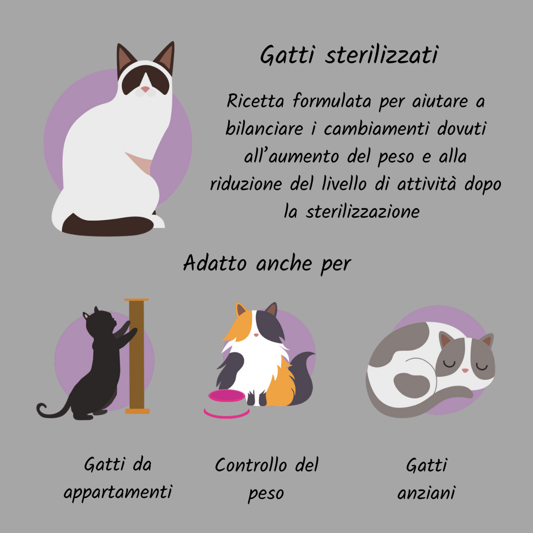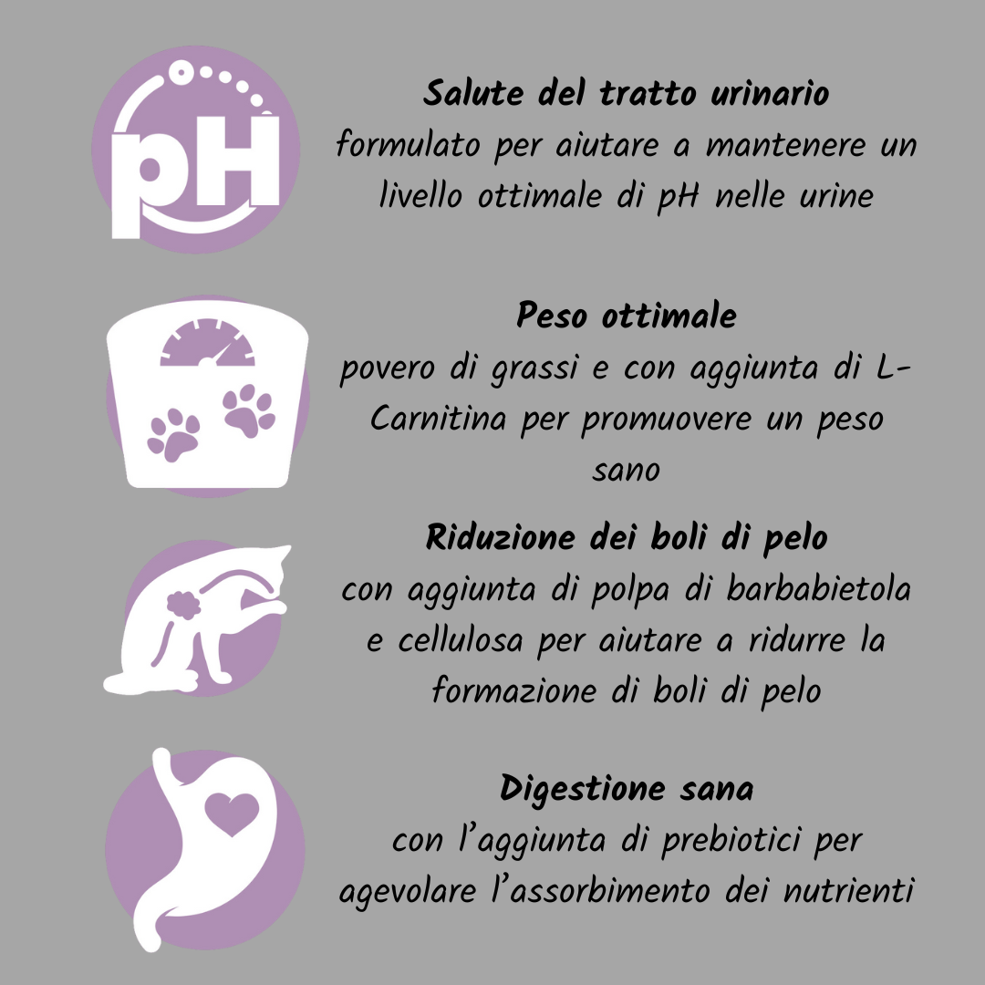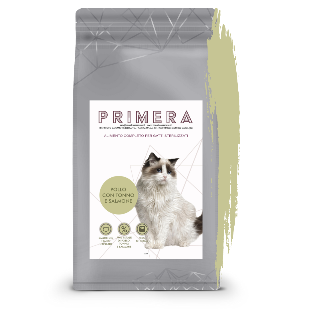 Pollo, tonno e salmone 70% (comprendente pollo disidratato 28%, pollo disossato cucinato al momento 26%, salmone disidratato 10%, tonno cucinato al momento 4%, grasso di pollo 2%), patate, piselli, lenticchie, ceci, cellulosa (2,5%), polpa di barbabietola (2%), sugo di fegato idrolizzato, olio di salmone, minerali, fruttooligosaccaridi (FOS 480 mg/kg), glucosamina (180 mg/kg), metilsulfonilmetano (180 mg/kg), condroitin solfato (125 mg/kg), mannanoligosaccaridi (MOS 120 mg/kg), mirtillo rosso disidratato, estratto di yucca (180 mg/kg)